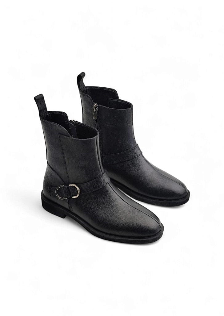• بوت زنانه مشکی چرم طبیعی سگک دار – ترکیبی از زیبایی و راحتی