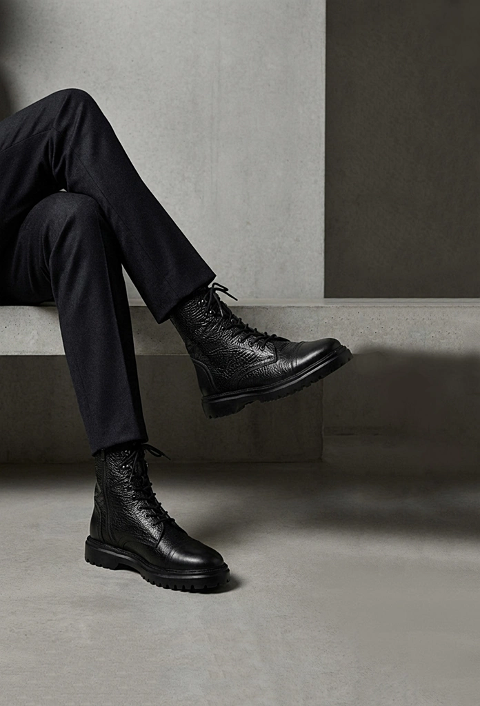 • شروعی تازه برای قدم‌های مطمئن؛ وقتی خیابان زیر پای شماست تصور کنید در یک عصر پاییزی یا زمستانی، با استایلی که نگاه‌ها را برمی‌گرداند، در شهر قدم می‌زنید. این بوت چرم مردانه، دقیقاً همان قطعه‌ی گمشده‌ی پازل خوش‌پوشی شماست. طراحی منحصربه‌فرد رویه که ترکیبی هنرمندانه از چرم گاوی باکیفیت با بافت برجسته و پنجه‌ی ساده و کلاسیک است، تضادی چشم‌نواز ایجاد کرده که هم اصالت چرم را فریاد می‌زند و هم روحیه‌ای مدرن و جسورانه دارد. این مدل کفش چرم مردانه فقط یک پوشش نیست؛ نمادی از شخصیت مردی است که به جزئیات اهمیت می‌دهد و می‌خواهد در هر موقعیتی، از قرارهای دوستانه تا پیاده‌روی‌های طولانی، متمایز و کاریزماتیک به نظر برسد.