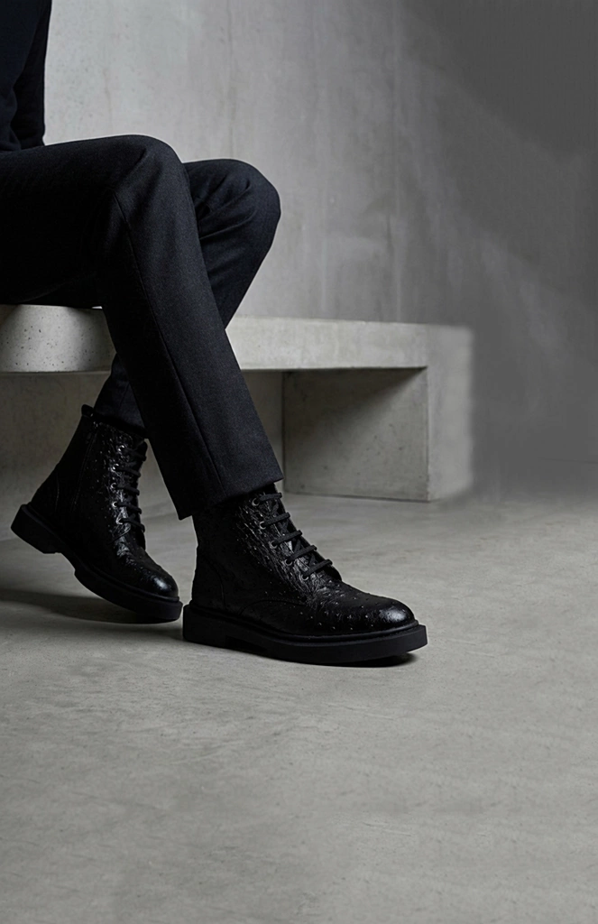 • وقتی صحبت از روزهای بارانی و پیاده‌روهای سنگی شهر می‌شود، هیچ‌چیز به اندازه یک جفت بوت که بوی اصالت بدهد، به شما قدرت نمی‌بخشد. بوت مردانه S۴۰۵۹ با آن قد و قامتِ استوار و رویه چرم گاوی درجه‌یک، دقیقاً همان همراهی است که در سرمای زمستان به آن نیاز دارید. طراحی بنددار این مدل در کنار خطوط دوخت ظریف، تضادی جذاب میان خشونتِ یک بوتِ کوهستان و ظرافتِ یک کفشِ شهری ایجاد کرده است. این مدل کفش چرم مردانه فقط برای گرم ماندن نیست؛ برای این است که هر بار به پاهایتان نگاه می‌کنید، از انتخابِ هوشمندانه و استایلِ بی‌نقصتان لذت ببرید و با هر قدم، ردپایی از اعتمادبه‌نفس بر جای بگذارید.